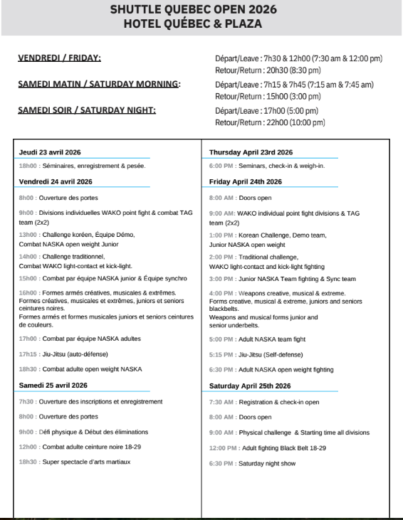Le Québec Open est l’unique tournoi du circuit NASKA sanctionné AAAAA en dehors des États-Unis. Le Québec Open est également sanctionné par WAKO Canada.